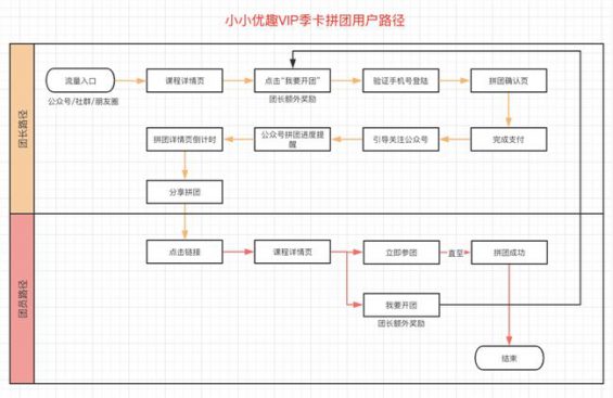 小小优趣VIP季卡拼团活动分为团长和团员两种角色,因此,我在分析用户路径的适合,会拆分为团长路径和团员路径。