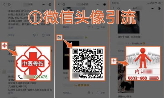 ④图文内容放手机号、微信二维码、微信号等信息→手机通讯录、微信好友等。