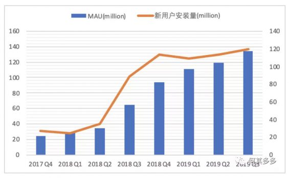 在每个季度1亿新用户引入,以及各种“极速版”的竞争下,CAC控制稳定,但需要结合用户的LTV评价获客的质量。也可以用留存来粗估,大家可以结合MAU、每季度新用户数、月活计算公式来估算一下每个Q的获客质量。