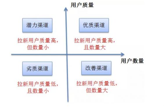 要评估一个投放渠道的效果好坏,一般选用用户数量和用户质量两个纬度。
