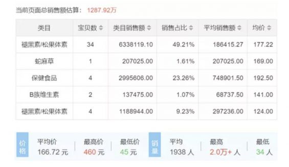淘宝上褪黑素产品销售情况(第一页汇总):