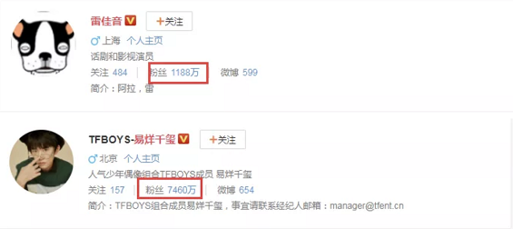 说到雷佳音,近年来,凭借“前夫哥”的形象,一跃成为银幕受欢迎的演员,而易烊千玺作为TFboys的一员,也是很多青少年的偶像,粉丝数目、话题度都不容忽视。