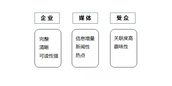 这个步骤叫做“校准三方需求”。一篇优秀的公关稿,往往能最大程度地平衡这三个问题,满足企业/媒体/用户三方的诉求,这也意味着整个信息传达的过程能更少摩擦,实现传播效果的最优:企业说了自己想说的,媒体不会因为稿件太“软”而拒稿,用户的接受度也较高。