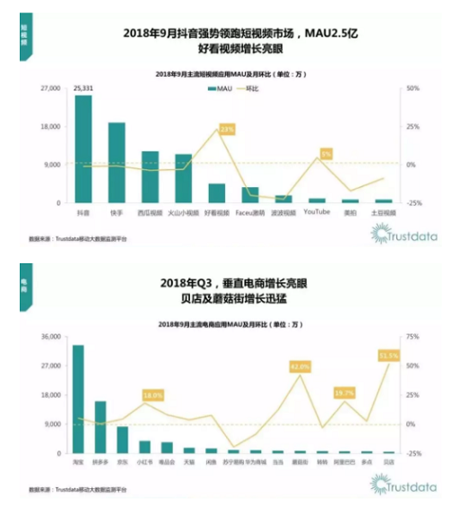 再来看前段时间也是大家讨论的重点内容,在2018年互联网Q3报告上显示,抖音实现负增长,拼多多0增长。