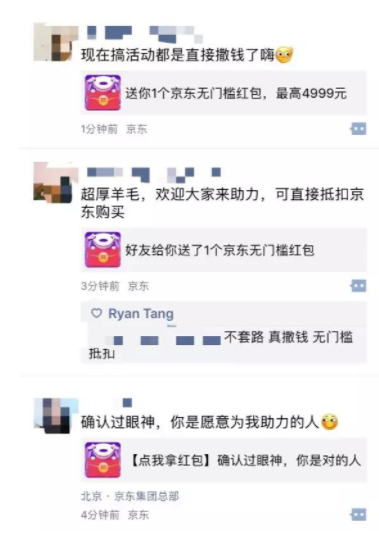 就这样,我的邀请链接以差异化的形式发布到了朋友圈,引起朋友圈的围观。发布后几分钟时间内,就有10位好友通过我的邀请链接进入,因此我也获得了5次拆红包的机会。