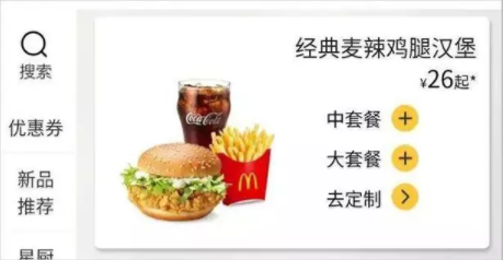 比如,麦当劳经典麦辣鸡腿汉堡套餐(中)的套餐价格为 26 元,但分开点套餐里的单品需要 37 元。