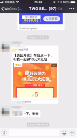 这种方式裂变只考虑到基础用户的分享意愿问题,而没有考虑到新用户的意愿;常见的有小程序分享获利。