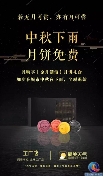 再来看看,网易的“中秋下雨,月饼免费送!”