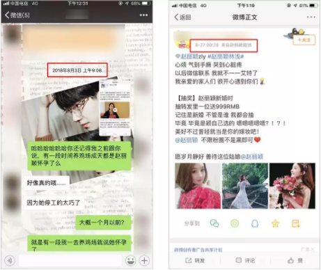 赵丽颖这个事情出来以前,就提前放了很多风,其实在 3 个月以前就有人在贴吧(养鸡场贴吧)传消息,说她怀孕了。