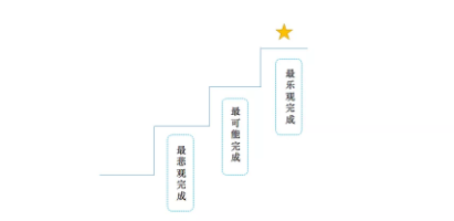 是我们将大目标拆分到每个阶段的过程,在项目管理分3个层次:最悲观完成(最基础)、最可能完成、最乐观完成,以此在原有的基础上递进;
