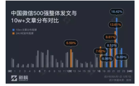 2、关于推送时间,选择了微信公众号10w+文章时间分布图示意,push可以选择8:00、12:00、20:00、21:00