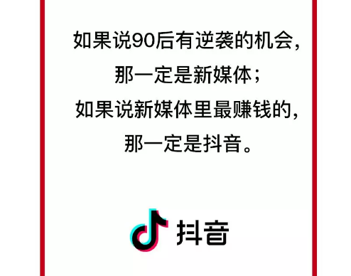 示例:如果说90后有逆袭的机会,那一定是新媒体;如果说新媒体里最赚钱的,那一定是做抖音。