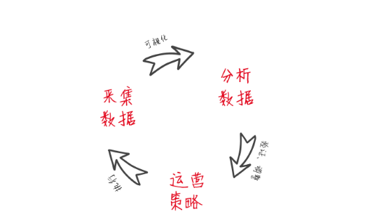 数据运营是一个闭环、流程化的工作,要结合运营策略进行不断地验证和修正,这样才能提高数据分析的精准度,这也是数据运营存在的价值体现。数据运营的流程节点,可分为:采集数据、分析数据和制定、执行运营策略。