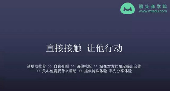 第一种是请朋友推荐,如果发现这个人是一个大V,一定要想想你朋友圈里有没有人可能跟他认识。如果是让朋友推荐的话,你基本上是没有一切壁垒就能够跟它发生直接的接触。