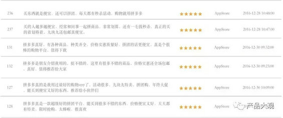 另外,在梳理拼多多评论的时候,发现了一个很有趣的现象,拼多多团队可能通过第三方进行了刷评操作,App Store上存在大量「模板内容0X」的不正常评论,但是,奇怪的是并不是刷好评,而是刷大量中评。如果属实的话,请拼多多团队更正态度,把精力放在后端管控上,毕竟你们花费了大量的营销费用,得到的万千差评,对你们适得其反。