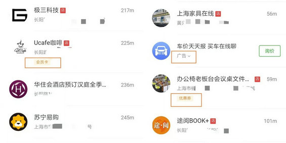 ② 目前小程序推出会员卡、优惠券、视频、广告 4 种推广标签,来帮助推出会员卡、优惠券的门店迅速地抓取用户注意。