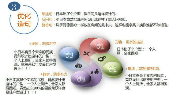 通过实践,以关键词:户型,日本,洗手间。不同类型的句子传达的感情显而易见。