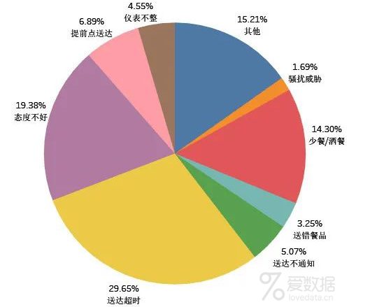 根据上图可知,“送达超时”占总数量的29.65%,为差评的主要原因。“态度不好”占19.38%,“少餐/撒餐”占14.30%为差评的次要原因。