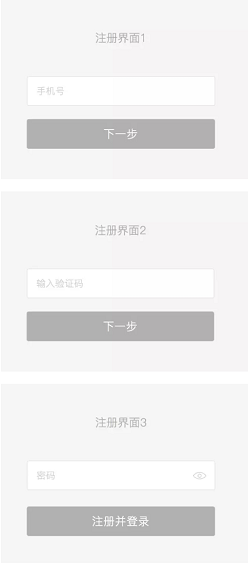 以上注册流程特意为单页的多任务做了优化,但是我发现如果接收验证码失败或者输出了验证码需要重新输入的话需要返回上层界面,造成了额外交互。于是我再加以改进有了稿件五。