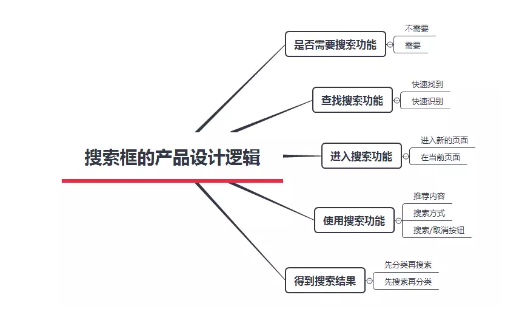 用户对于搜索的需求和过程可以理解为需要搜索功能→查找搜索功能→进入搜索功能→使用搜索功能→得到搜索结果。