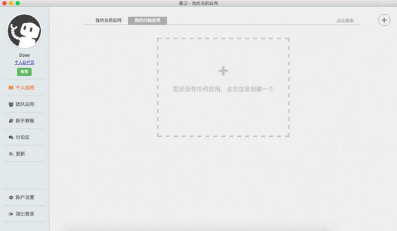 正确示例,使用墨刀第一次登录页面时,增加了引导性提示,告诉用户进行下一步操作,引导用户创建第一个应用。