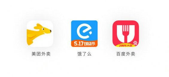 同样是做O2O外卖,饿了么选择了明度较高的蓝色,美团外卖选择了很好传达其外卖送达很快的明黄。但是百度却用了桃红,水平不够,暂时没理解。