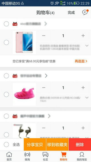 淘宝安卓版的购物车,初始状态下不可修改商品数量