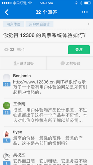听起来好像又是一句废话。我们翻一翻网上的各种评论就知道,大家对于12306基本上是骂声一片的。例如,在知乎上面就有一个类似的问题: