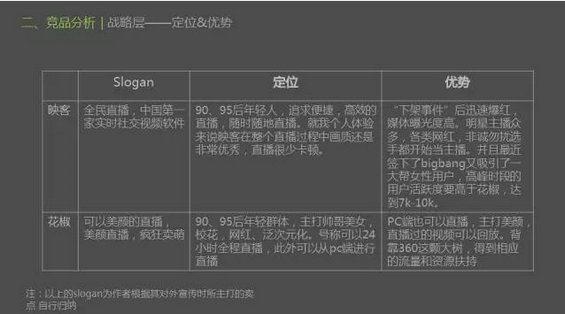 15年应届普通本科毕业,产品小菜鸟,现在快一年的社区o2o方向的的产品运营经验,因为自己的职业规划就是走产品这条路,一条道走到黑吧。最近,在找移动直播方向的产品助理岗,今天这篇竞品报告是我的一次面试作业。
