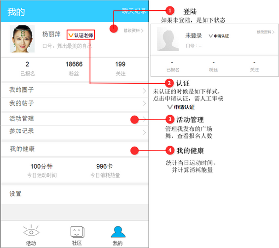 1). 由于很多广场舞团体已经在固定地点存在了很多年,所以本app仅仅提供一个活动信息发布的平台,而不是发起活动的平台。对于用户来说,可以更详细地了解周围的广场舞,从而有选择权,对发布者来说,有吸引人气、导流的作用。另外,虽然提供报名入口,但是不局限于线上报名,统计的报名人数仅仅给用户作为判断活动规模的一个参考。