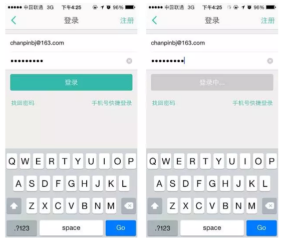 触发登录操作,除了登录按钮,也可以通过键盘上“确定”(或Done)等确定键来触发登录。键盘上的确定按钮触发登录,更具有连贯性。