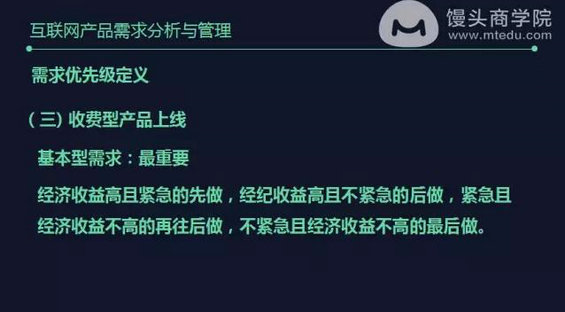对于收费型产品,更重要的是看经济效益,经济效益高且紧急的要先做,经济效益高且不紧急的后做,经济效益低但紧急的再往后做,经济效益低且不紧急的最后做。