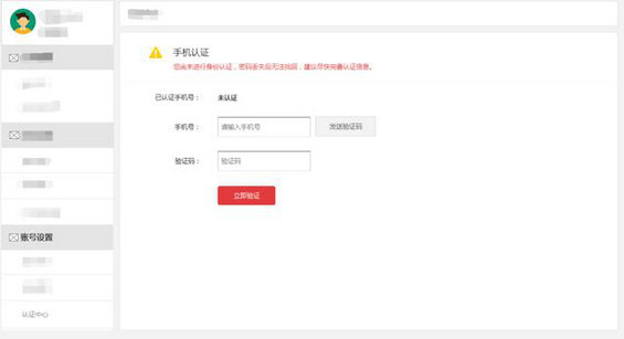 未认证的用户进来的状态,会显示用户未认证,点击立即认证会有个模态窗口,让你填写手机号,验证码。