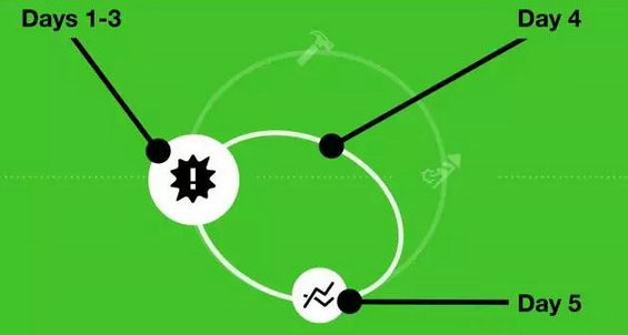 除了找到合适的人,第一天还有非常重要的一件工作:制造时间压力。团队领袖会把目标告诉成员:在第 5 天的时候,我们必须拿出一个产品原型,并且对 5 位用户进行访谈。这样做可以加强工作的紧迫感,让所有人在思考的过程中更为落地,而不是天马行空。
