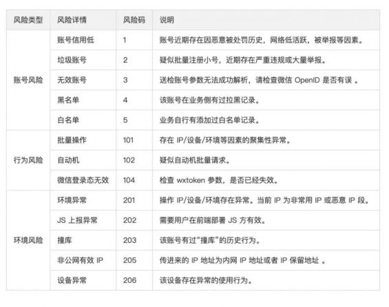 我们可以先简单看一下腾讯云的防刷接口对风险类型的定义: