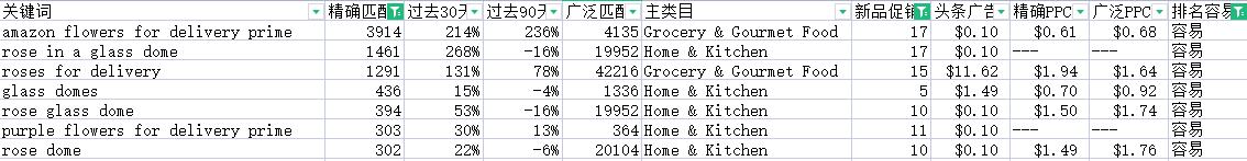 我们的筛选条件是,关键词搜索量大于300,送测不超过20个,关键词排名选取容易的层级,经过一些调整,得到的数据如下: