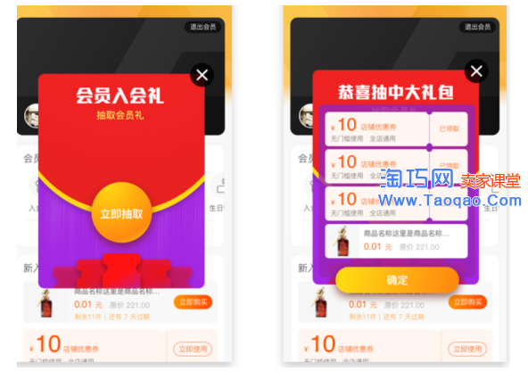 对于已经入会的普通会员、高级会员、VIP会员我们可以设置会员礼包,跟上面设置的方式一样,建议大家设置3张左右的优惠券,会员等级越高还可以设置商品(一分钱购买。)