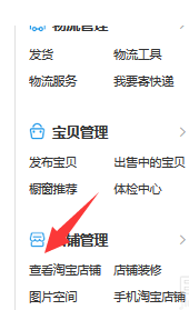 卖家中心下方的店铺管理有个查看淘宝店铺,点击查看淘宝店铺进入自己的淘宝店铺。