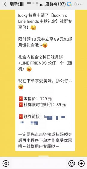 案例名称:瑞幸咖啡—老带新、社群福利等活动